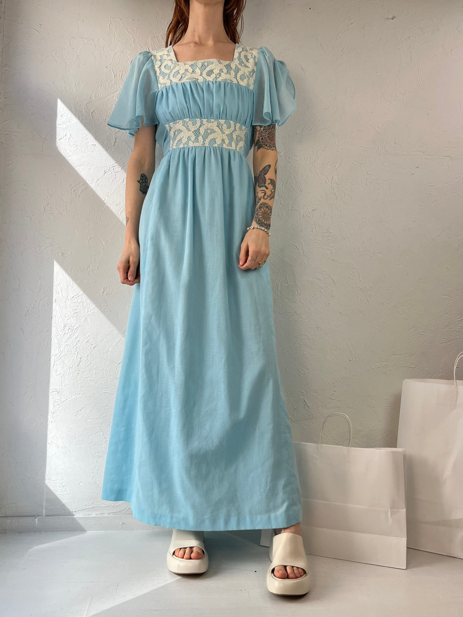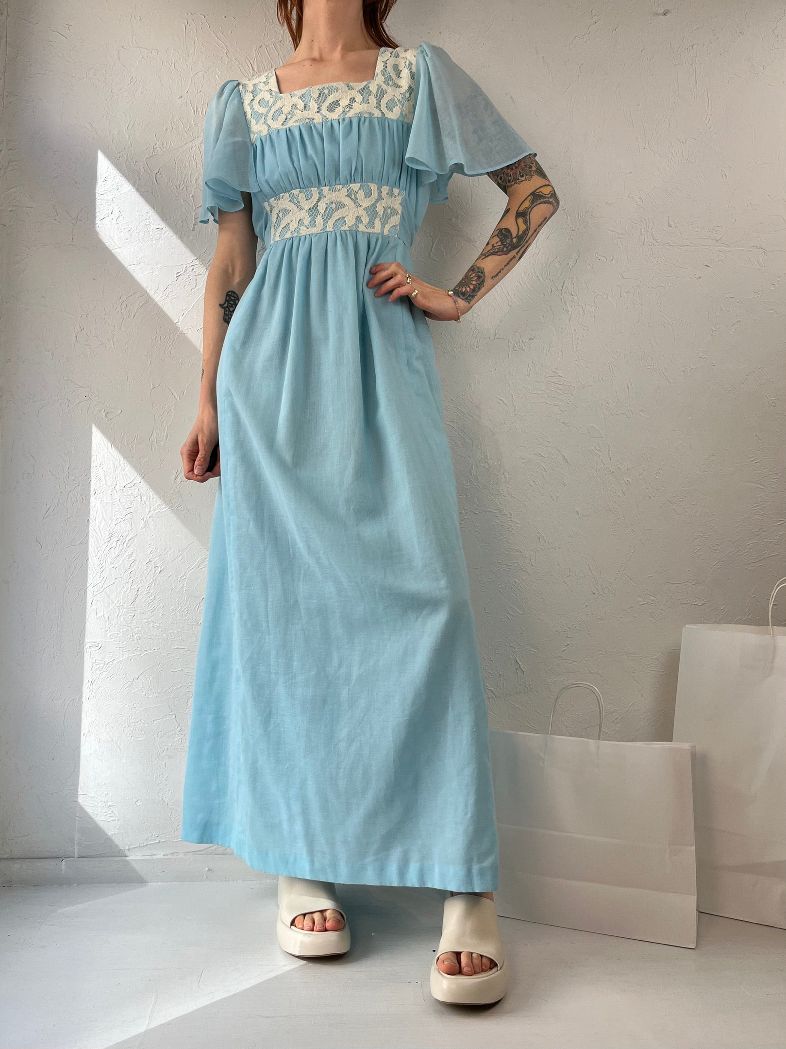 – Hand made baby blue hippie boho maxi dress